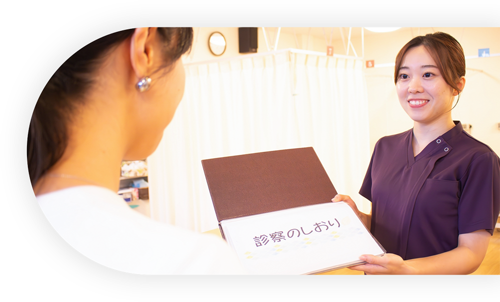 施術の流れや内容、注意事項を読んでいただき問診票を記入します。